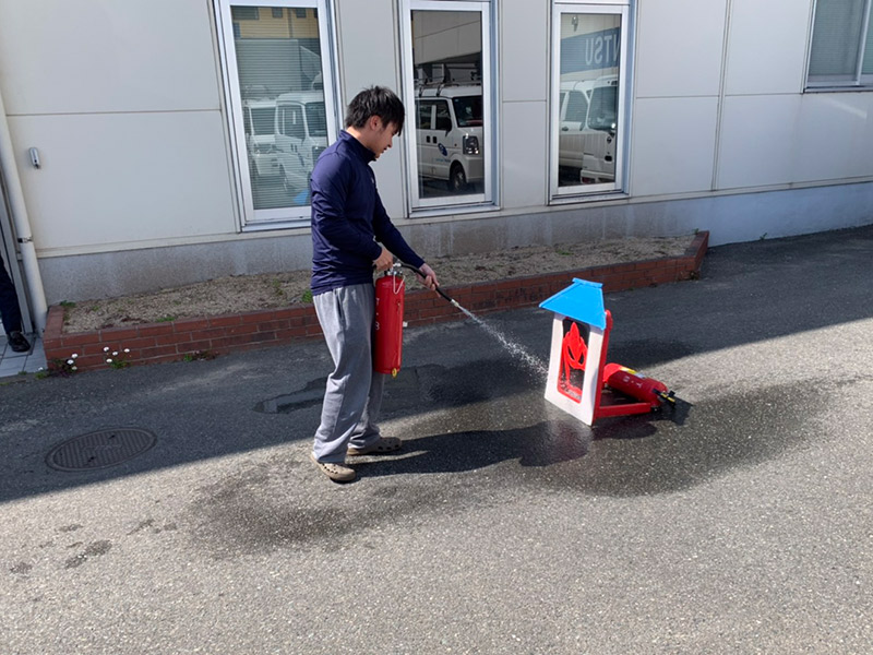 正しい通報の仕方から水消火器の初期消火の方法を教えて頂きました。実際の消化体験もさせて頂きました。