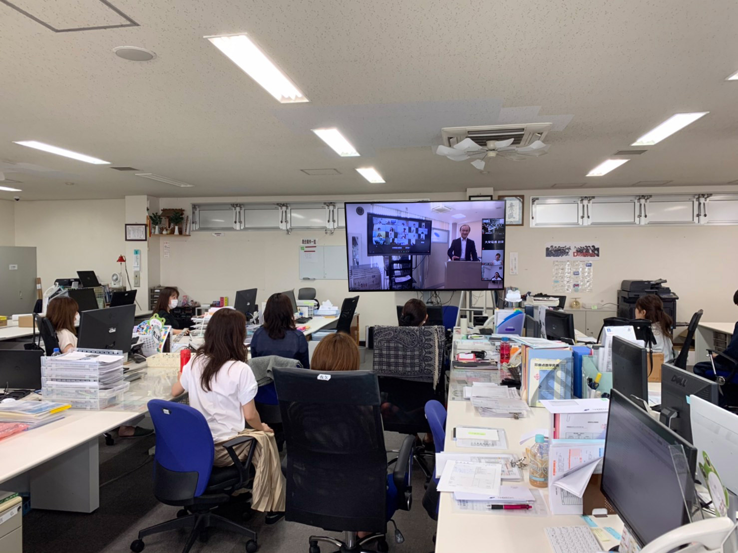 マスク着用、一定の間隔をあけることはもちろんですが、3蜜を避ける為、1階と2階、またZOOMも使用し行いました。
