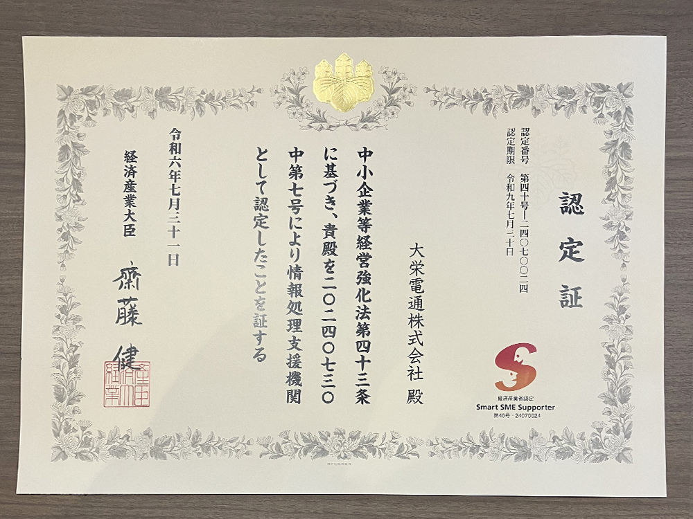 この度、弊社は経済産業省が推進する「スマートSMEサポーター制度」において、正式に認定を取得いたしましたのでお知らせいたします。