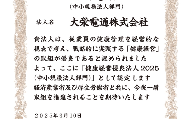 健康経営優良法人2025 取得のお知らせ